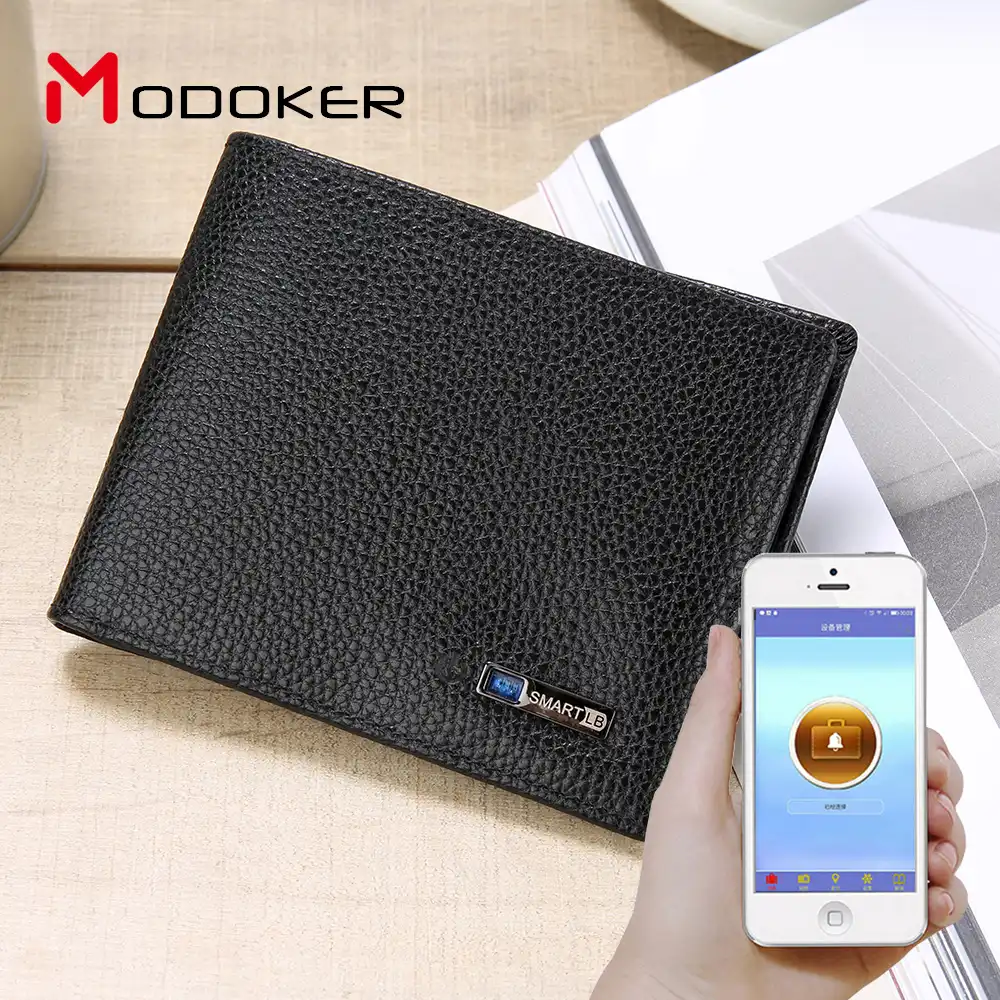 Men Smart Wallet Genuine Leather Anti Theft Gps Locator Wallet