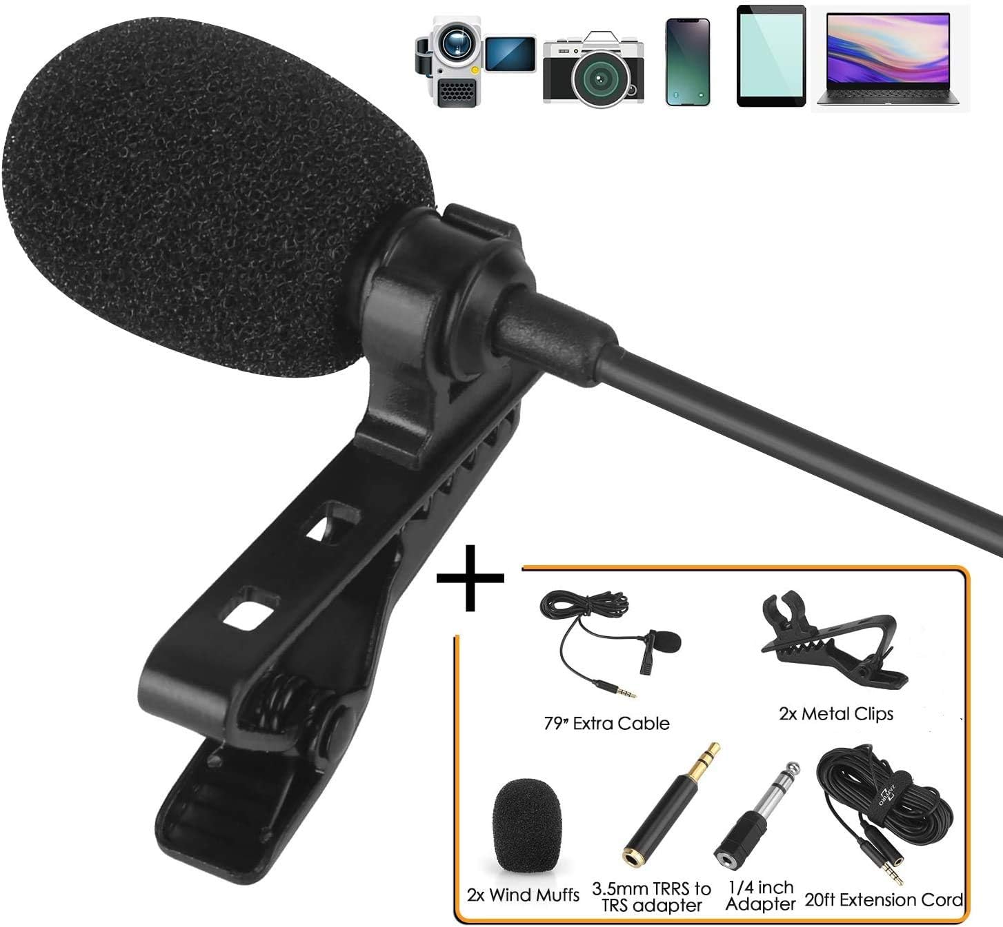 Lavalier Lapel Microphone Kit Clip On Omnidirectional Condenser