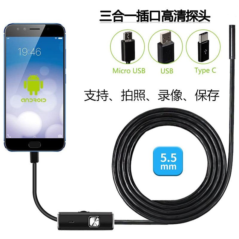 Bakeey 3 In 1 7mm 6led Type C Micro Usb Borescope Inspection